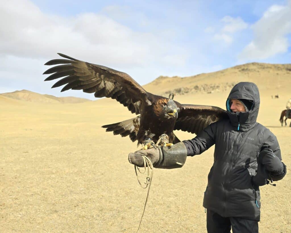 Experiencing Mongolia’s traditional eagle hunting with a trained golden eagle