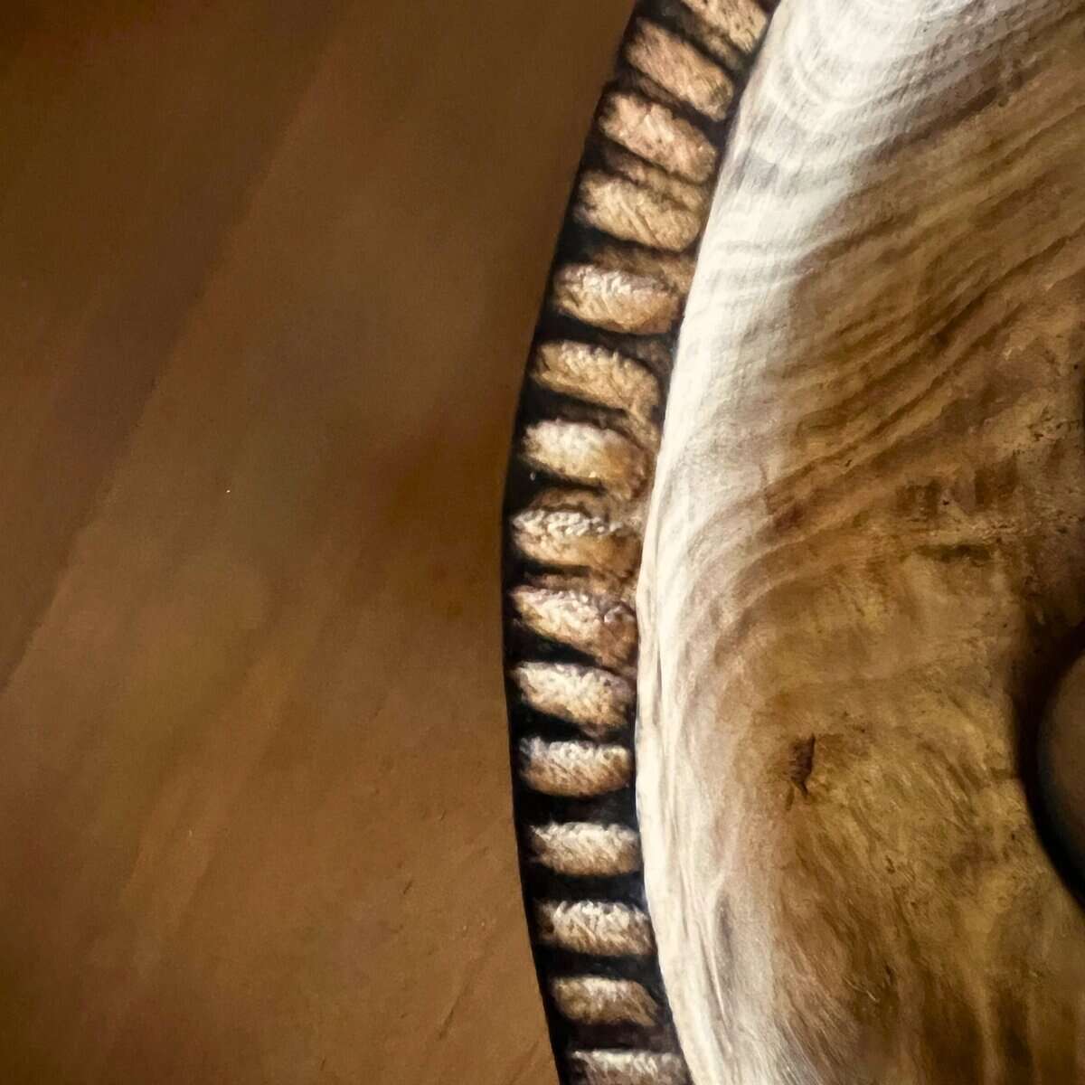 This salad bowl set is made from richly grained mahogany, shaped and char-finished using a traditional burning technique that deepens the wood’s natural color. The result is a smooth, warm surface with a subtle blackened edge, a texture that feels as timeless as it looks.